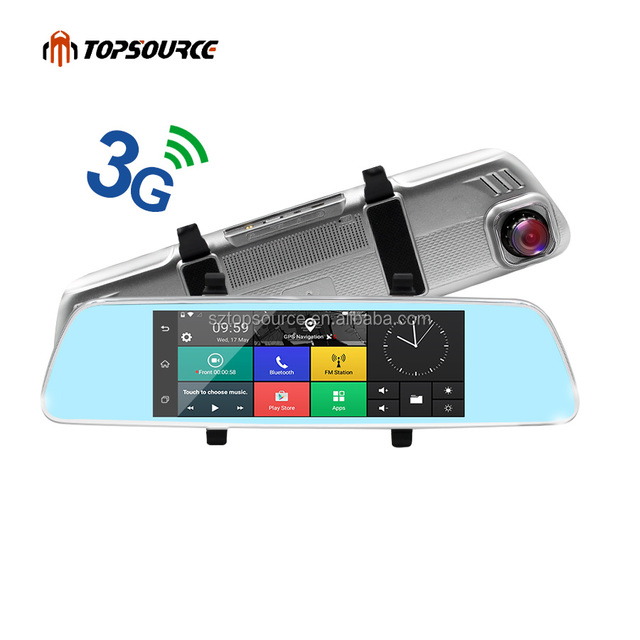 กระจกมองหลังรถยนต์1080P 7.0 "3G แอนดรอยด์5.0 BT นำทาง GPS WiFi FM กล้องแบบเรียลไทม์คู่หน้าจอสัมผัสกระจกมองหลัง